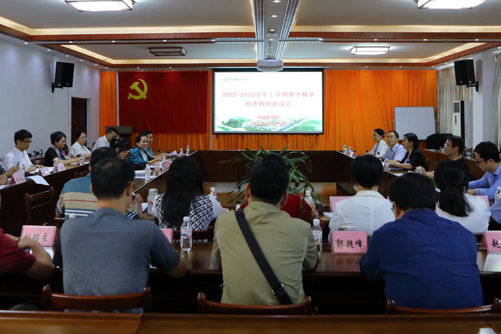 根据《星空彩票老版本下载关于开展2022~2023学年上学期期中教学检查的通知》文件精神及学校相关工作部署,10月26日下午,学校校长姚春一行到基础医学院召开了2022~2023学年上学期期中教学检查教师座谈会,校长助理史亚飞、校办主任蓝开宝、教务处处长、教评中心主任莫雪妮等陪同检查。基础医学院班子成员、系主任和党支部书记等参加了座谈。座谈会由基础医学院党委副书记、院长林江主持。