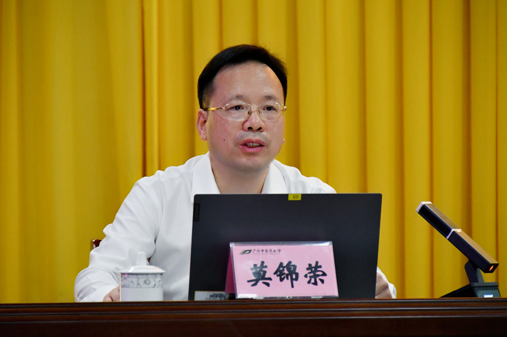 党的二十大召开期间,10月18日下午,我校在仙葫校区合德楼525会议室召开了学习党的二十大报告座谈会。学校领导,全体党委委员、二级党委(党总支)书记集中学习了党的二十大报告和习近平总书记参加广西代表团讨论时的重要讲话精神,并进行了交流发言。学校党委书记莫锦荣,党委副书记、校长姚春作了中心发言,党委副书记何并文,党委常委、副校长冷静,党委常委、纪委书记覃宇环,党委常委、总会计师何刚亮,党委常委、组织部长唐振宇也结合自己的工作实际,分享了自己的学习体会和感悟。