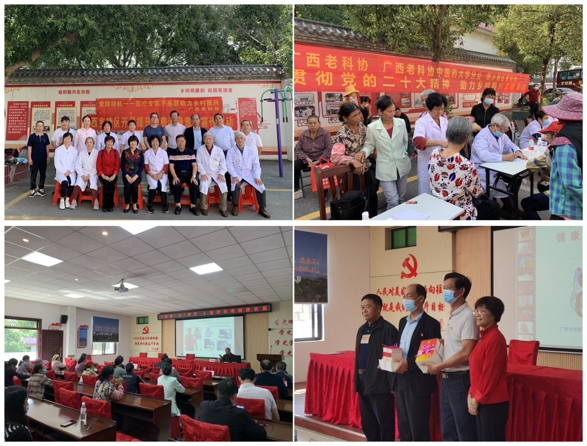 10月25日,学校以“学习党的二十大精神,感受非遗文化魅力”为主题,到隆安县都结乡开展了中医药文化科普宣传暨乡村振兴主题实践活动,展示国家级、自治区级非物质文化遗产(传统医药),用壮医药线点灸疗法、壮医经筋疗法、壮医药物竹罐疗法、瑶医观目诊病法等非遗传统医药诊疗技法为群众诊治,弘扬中华优秀传统文化、中医药文化,普及健康知识,助力乡村振兴和健康广西建设。
