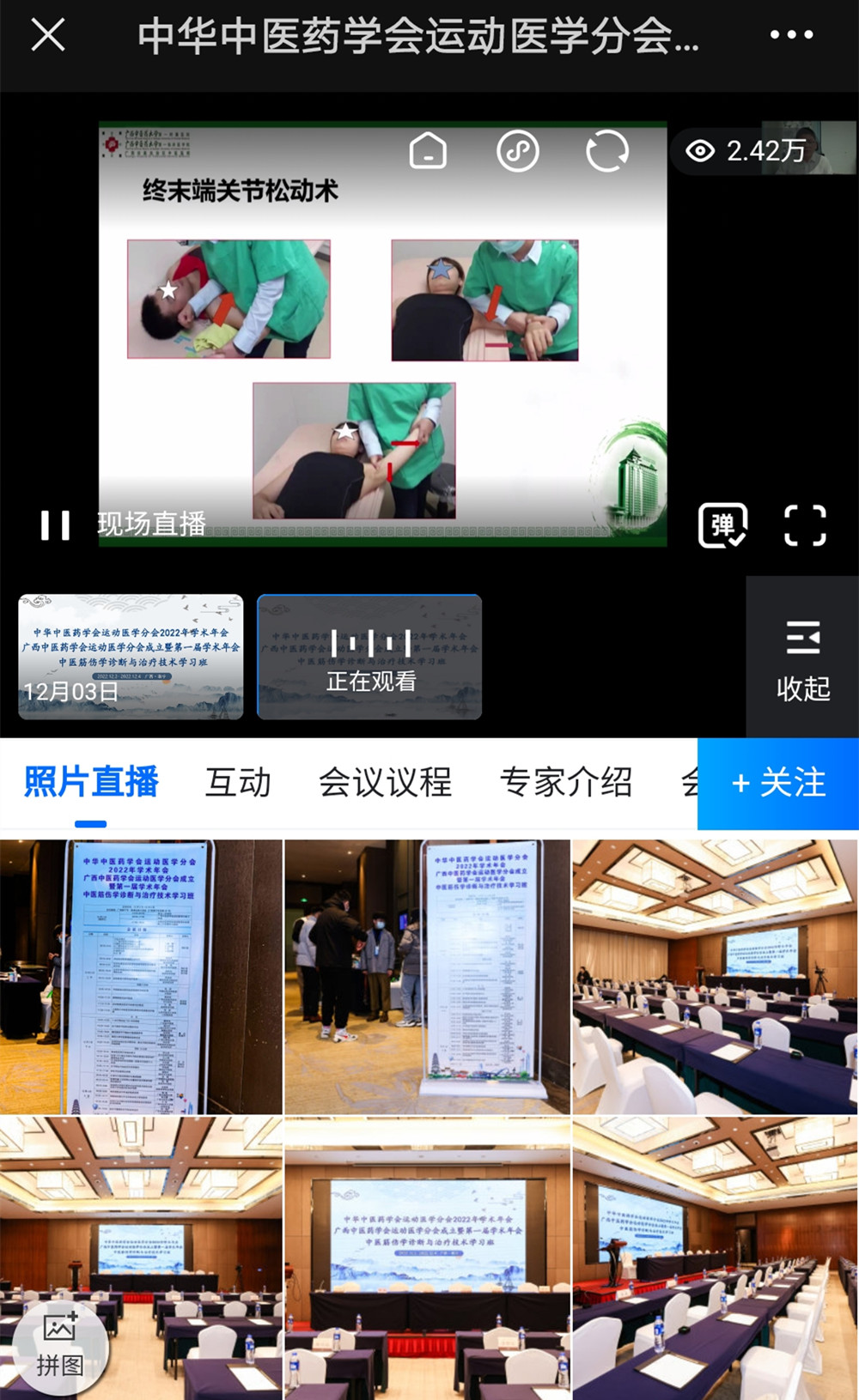 12月3日至4日,由中华中医药学会、广西中医药学会主办,星空彩票老版本下载承办的中华中医药学会运动医学分会2022年学术年会、广西中医药学会运动医学分会成立大会暨第一届学术年会在南宁召开。会议以线上、线下相结合的形式举办。按南宁市防控要求,线下到现场参会代表与工作人员严格控制在49人,线上参会人数包括中国、新加坡、马来西亚等国家与香港地区共2.42万人。