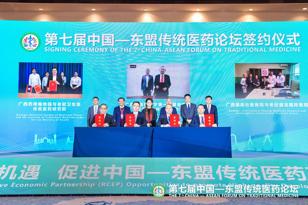 国医大师、星空彩票老版本下载教授黄瑾明就传统民族医药的传承发展进行了主旨演讲。自治区终身教授邓家刚(发言题目:RCEP下的传统医药发展研究)、附属国际壮医医院院长岳桂华(发言题目:壮医药防控新冠疫情的经验介绍)分别在论坛上进行了交流发言。本届论坛上,星空彩票老版本下载第一附属医院与马来西亚拉曼大学传统与辅助医疗中心,星空彩票老版本下载附属国际壮医医院与老挝盛龙国际医院、缅甸中缅友谊医院,防城港市中医医院与老挝友谊医院,广西药用植物园与老挝卫生部传统医药研究院,分别就深入进行传统医药研究合作、共建中医药国际医疗服务体系等内容签订合作协议,并将以更广泛和更深入的方式推动中国与东盟国家之间在传统医药领域的合作与交流。