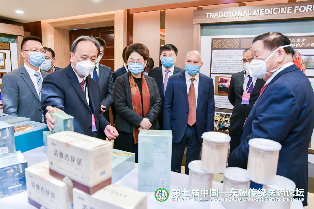 与会嘉宾参观第七届中国—东盟传统医药论坛成果展