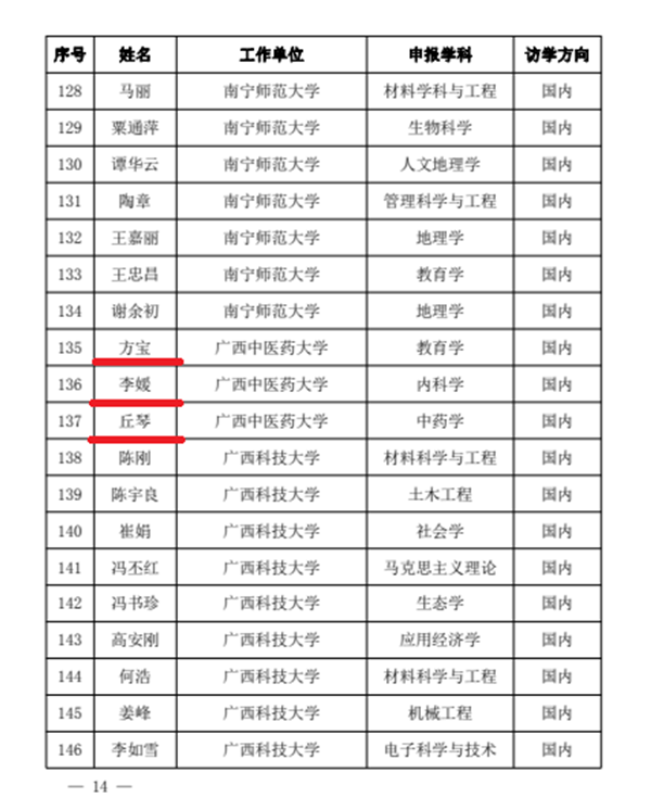 【喜讯】我校丘琴教授、方宝教授、李媛副主任医师入选“广西高等学校千名中青年骨干教师培育计划”项目
