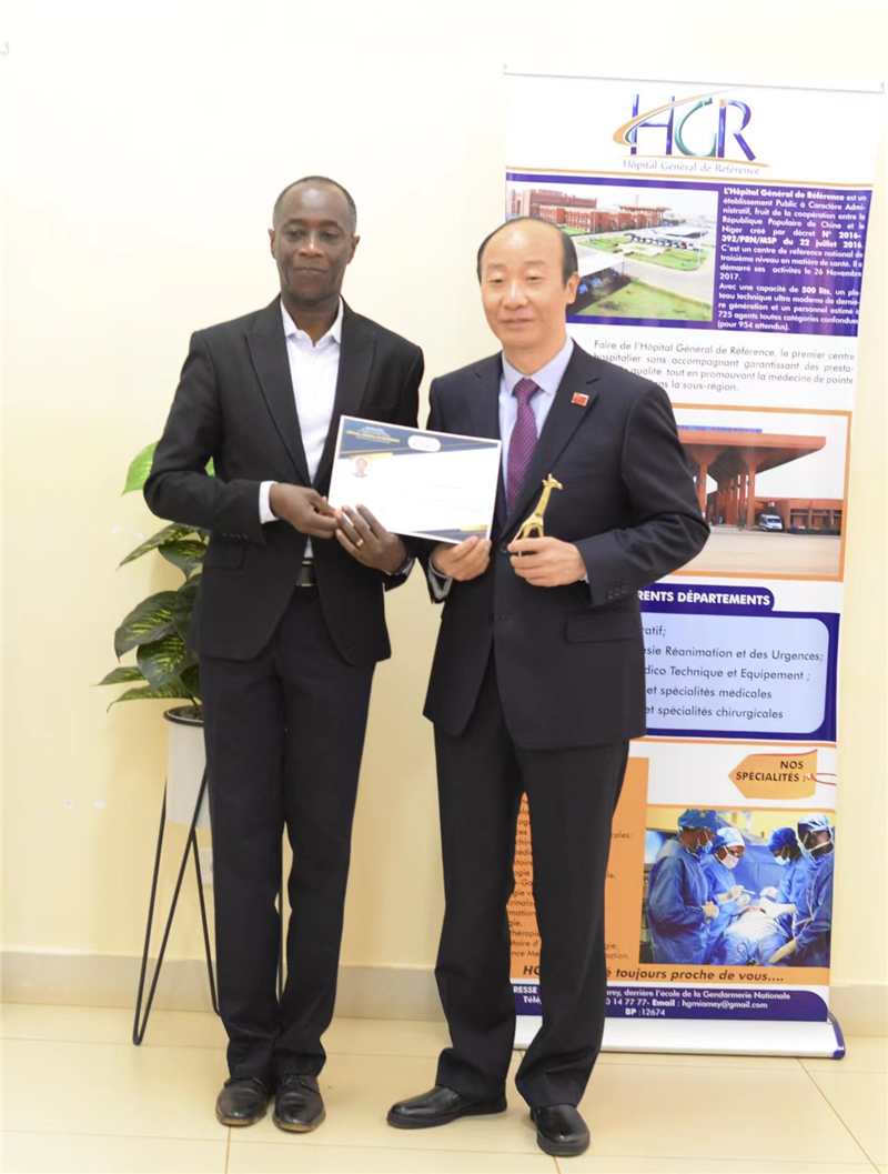 在援尼日尔22个月的时间里,为保证医疗队援外工作顺利完成,作为副队长的顾国龙勇于承担医疗队内部事务,积极协助队长开展医疗队的各项工作和党支部建设工作,深入学习党的二十大精神,与中国驻尼日尔大使馆党支部开展支部共建,邀请大使讲党课,不断提高医疗队员的思想觉悟和政治素质。同时,他还积极宣传献血知识,组织并亲自为在尼日尔的中资公司患病的员工献血,这种无私奉献的行为,赢得了在尼华人华侨和尼日尔医务人员的赞许。