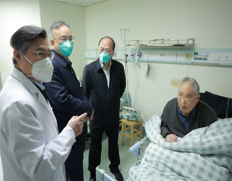 黄俊华一行先后来到一附院东葛院区干部病区、老年病科、重症医学科、中药房等实地查看新冠病毒感染患者救治情况及中医药参与新冠患者救治的优势发挥等,并亲切慰问了坚守一线的医务人员,看望了正在住院的新冠患者。一附院院长谢胜代表一附院详细汇报了目前一附院新冠患者救治整体情况,一附院充分发挥中医药优势、强化中西协同救治新冠重症患者的有效举措。
