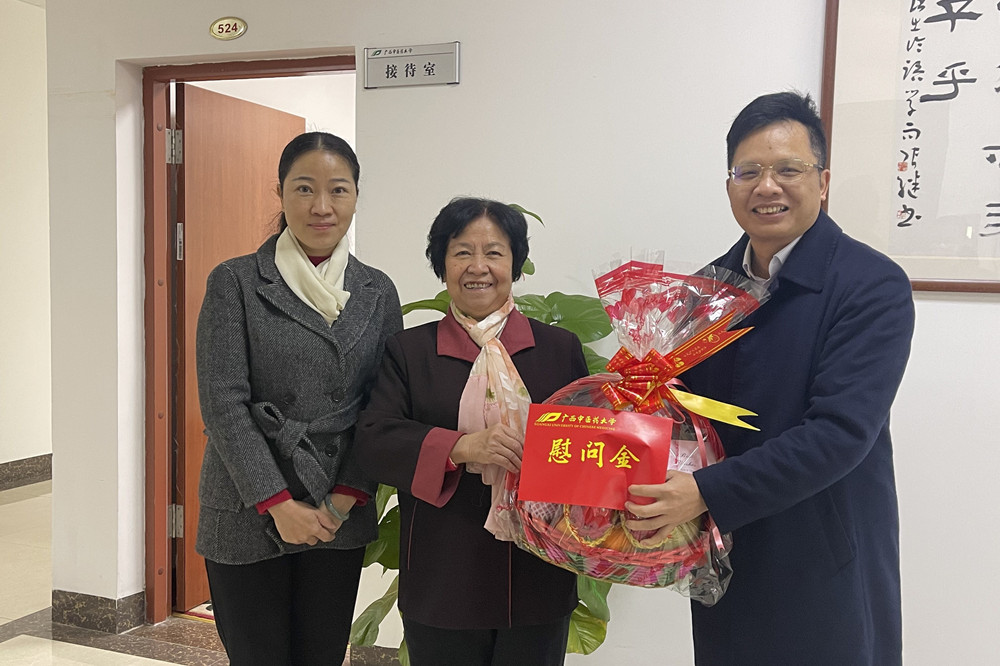 新春佳节到来之际,学校党委书记莫锦荣,校长姚春,副书记庞宇舟、何并文,副校长冷静,纪委书记覃宇环,总会计师何刚亮,分别在学校相关部门负责人的陪同下慰问离退休干部、老党员、生活困难职工、高层次人才代表、教师代表等。