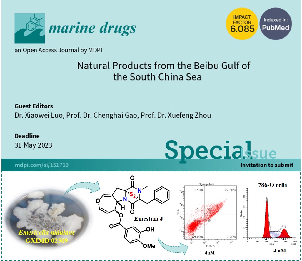 星空彩票老版本下载海洋药物研究院/广西海洋药物重点实验室刘永宏/罗小卫研究团队,长期致力于北部湾海洋中药共附生微生物资源的勘探发掘及其活性物质研究,近期在广西涠洲岛海洋中药共附生微生物来源抗肿瘤活性代谢产物研究方面取得新进展。研究成果以第一单位分别发表在中科院二区期刊《海洋药物》(Maine Drugs, 2023, 21(1): 27; 2023, 21(2), 63)和《浙江大学学报(英文版)B辑》(Journal of Zhejiang University SCIENCE B, 2023)。