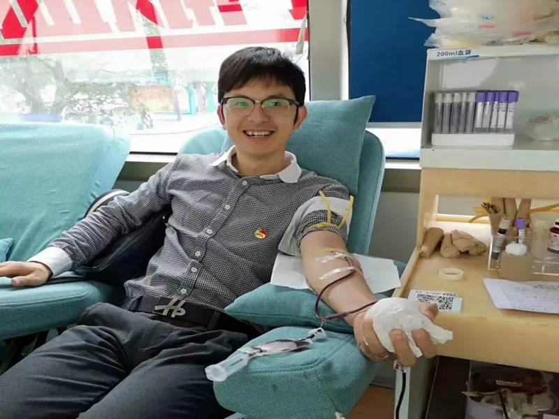 陈晓东老师耐心等待采血完毕