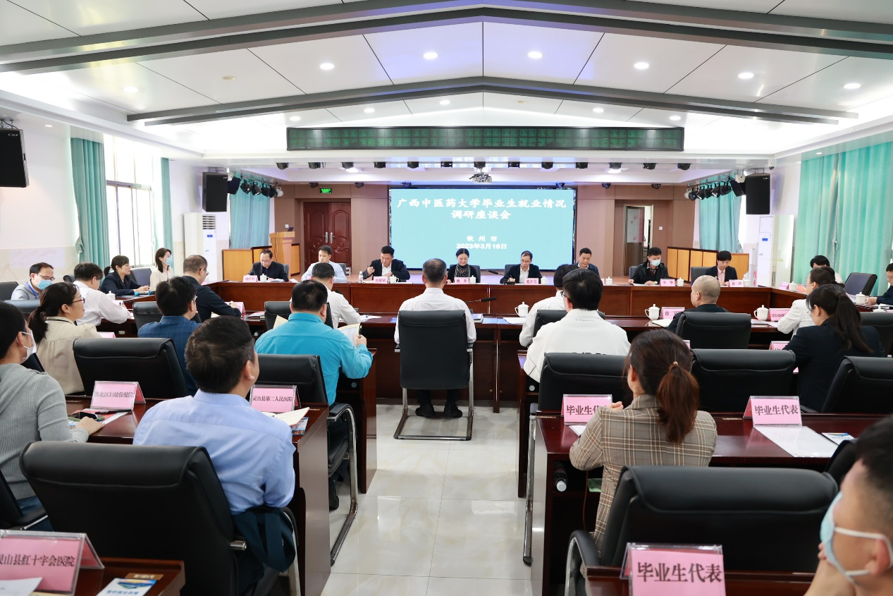 为贯彻落实党中央、国务院关于高校毕业生就业工作的决策部署,深入开展高校书记校长“访企拓岗促就业”专项行动,进一步推动我校与钦州市战略合作项目落实落地,深化校地、校院、校企合作,提升人才培养质量。3月16日,姚春校长带队赴钦州市进行“访企拓岗促就业”专项行动。钦州市委常委、常务副市长林海波,钦州市人民政府副秘书长韦家杰,钦州市卫生健康委员会党组书记、主任胡颎,钦州市二级以上二十多家医疗单位、医药企业、部分校友代表等参加了本次座谈会,座谈会在钦州市中医医院学术报告厅举行。学校校长办公室、招生与就业处、教务处、研究生院、第一临床医学院、高等职业技术学院等部门负责人及有关同志随同调研。