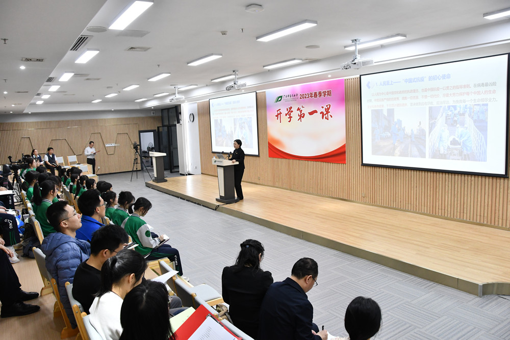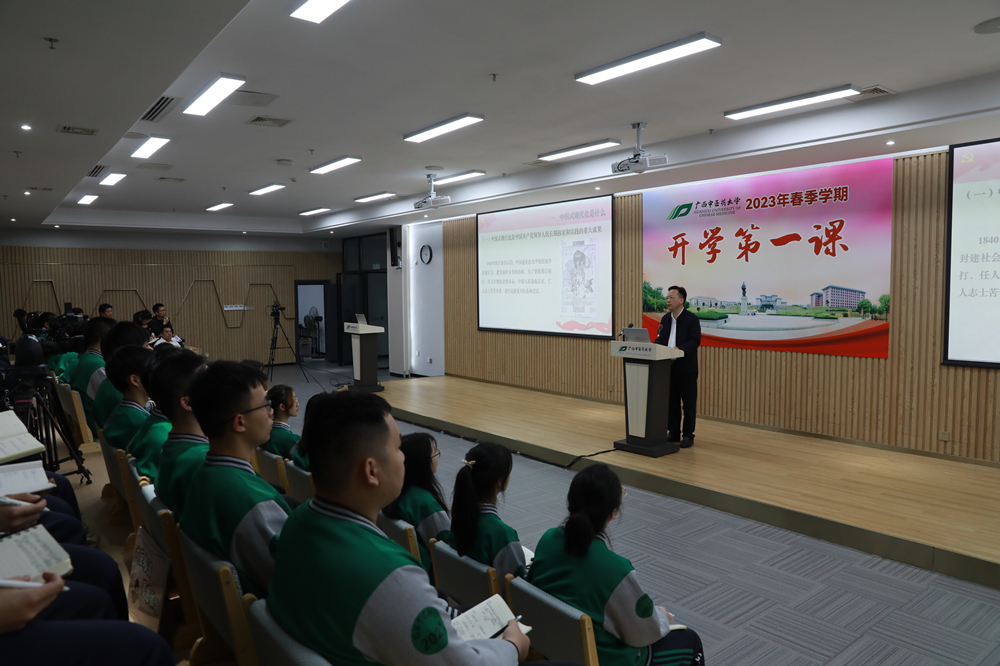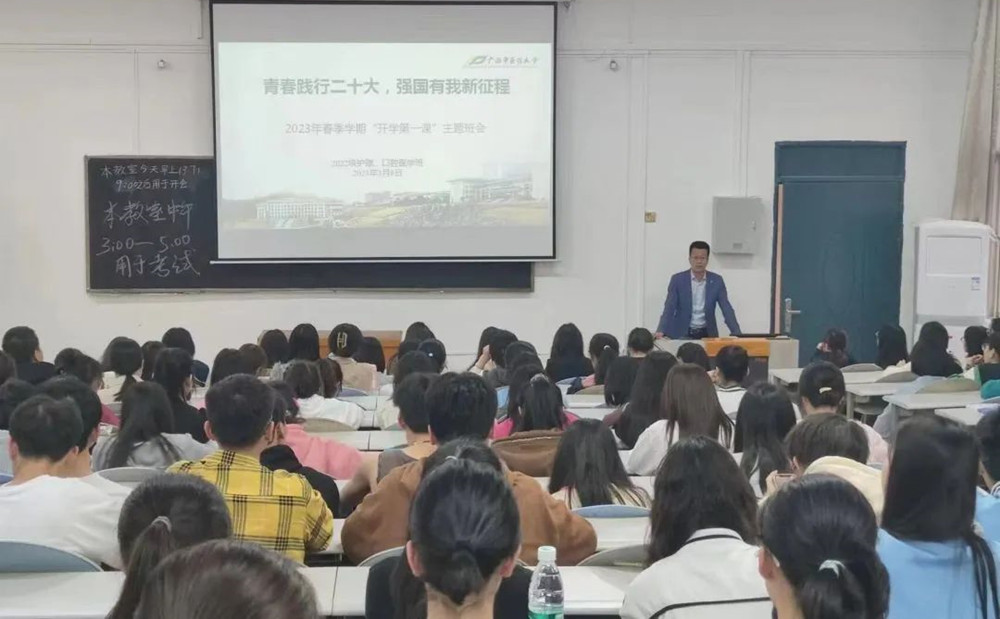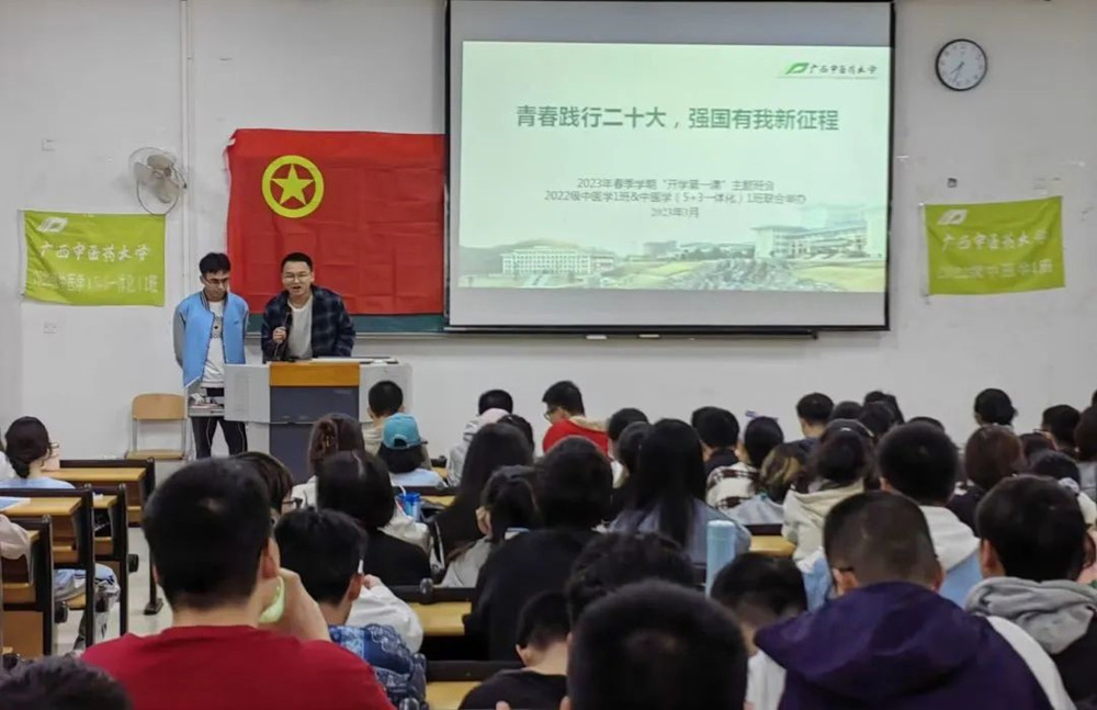 人勤春来早,奋进正当时!2023春季学期伊始,学校立体化、全方位开展 “开学第一课”工作,学校领导、专家教师、辅导员分别走上讲台,讲授“开学第一课”,用党的科学理论武装青年,用鲜活的案例感染学生,帮助桂中医学子系好人生“第一粒扣子”,引导同学们坚定理想信念,自觉将“小我”融入“大我”,担负起时代赋予的重任,在中医药事业的守正创新之路上书写无愧于时代、无愧于人民的青春答卷。