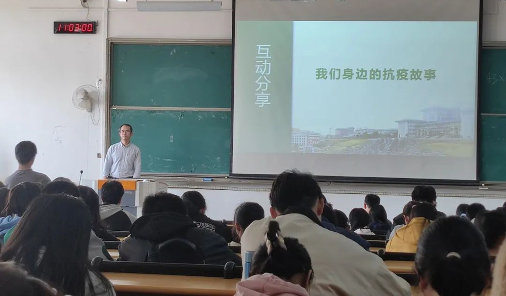 姚春阐述了中国抗疫的特色与优势、中医药在疫情防控阻击战中的贡献、抗疫的启示和感悟。姚春指出,三年多中国抗疫,以习近平同志为核心的党中央始终坚持人民至上、生命至上,团结带领全党全国各族人民坚定不移地开展抗击疫情斗争,取得疫情防控重大决定性胜利。在抗疫历程中,彰显了人民至上的初心使命,精准防控的独门法宝,命运与共的大国担当。姚春从国家层面的中医药战略、广西中医药参与疫情防控的经验做法两方面向同学们介绍了中医药在打赢疫情防控阻击战中的作用。姚春希望同学们要胸怀理想,做一名有担当的人。要把个人追求融入到“中国梦”之中,把个人成长融入到中医药事业发展之中。要严谨治学,做一名有本领的人。要传承精华、守正创新,增强民族自信和文化自信。要磨砺意志,做一名有健康体魄的人。