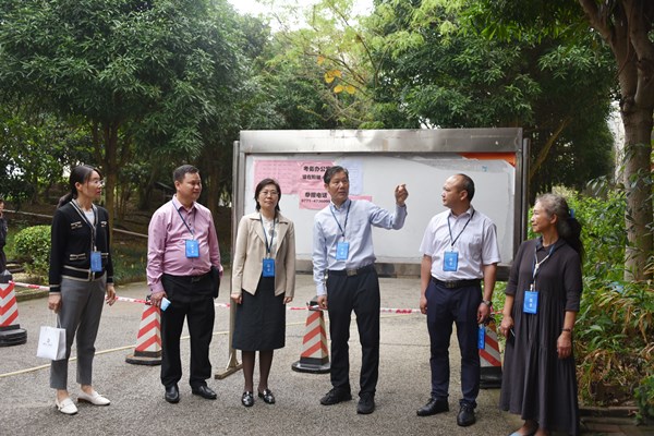 冷静一行先详细地查看了整个考务工作的实施情况,对监考人员履职及考场纪律等情况进行现场严格检查,并现场抽查了部分考生的证件情况。同时,在巡视过程中,考务组组长梁天坚详细汇报考场安全保障、试卷保密、应急处置、后勤服务等相关考务工作。冷静对赛院的各项准备工作给予了充分的肯定,同时强调中职生对口升学考试意义重大,是保障中职生继续深造的关键通道,考务工作要落实考风考纪分级责任制,确保招生考试公平公正。
