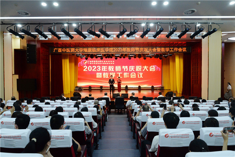 9月7日下午,附属瑞康医院在B座十楼学术报告厅召开2023年教师节庆祝大会暨教学工作会议。学校校长姚春,校办主任蓝开宝,教务处处长莫雪妮,瑞康医院领导出席大会。全体中层干部,教务科、学生科、团委全体人员,各科室教学秘书、院级督导专家、研究生及住培导师、兼职班主任、教师代表及获奖教师、学生学员代表共四百余人参加会议。