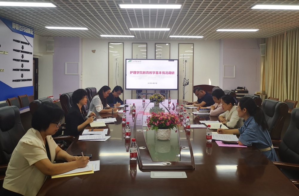 10月17日下午,学校副校长钟宏桃、教务处处长莫雪妮、实验实训教学中心常务副主任韦维一行到护理学院进行星空网页游戏官网基本情况调研,学院领导班子、教学管理部门负责人及教研室主任参加调研会议。