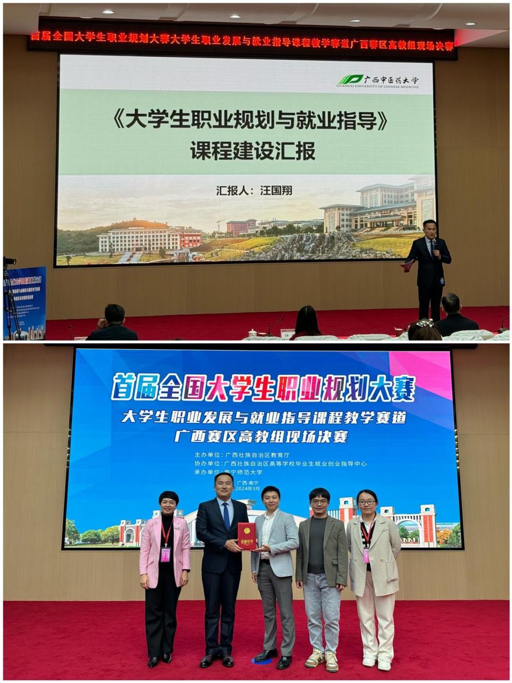 3月16日,在南宁师范大学举办的首届全国大学生职业规划大赛广西赛区现场总决赛大学生职业发展与就业指导课程教学赛道高教组比赛中,我校汪国翔教师团队表现优异,荣获金奖。