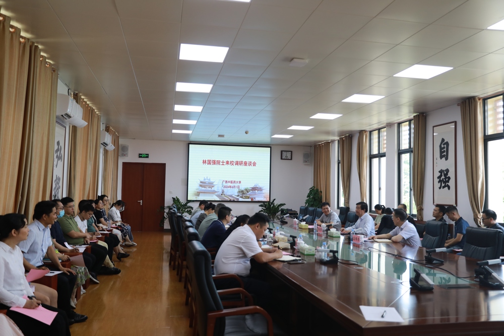 林国强院士对学校的师资力量和取得成绩表示赞赏,强调要抓住机遇,大力开发挖掘少数民族药、海洋药物;注重人才培养质量,建设好博士后流动站;坚持开放包容,开展有特色的基础研究和应用研究;充分发挥区位优势,加强与东盟国家科研机构合作。