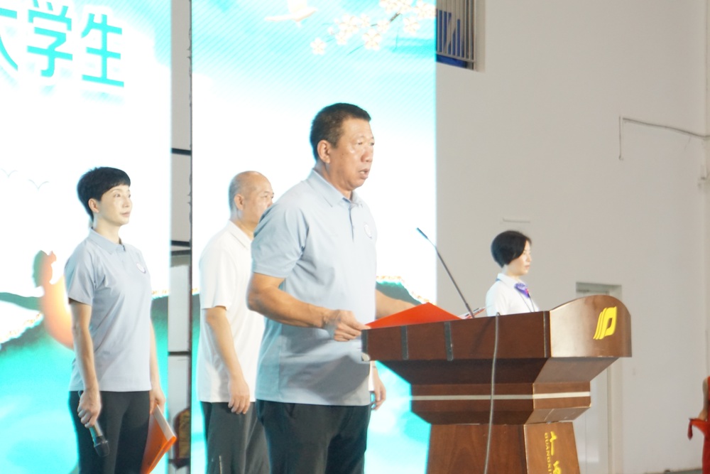 石荣群在致辞中表示,我校一贯高度重视学校体育工作,稳步推进公共体育教学改革,全面落实《国家学生体质健康标准》,主动承接各类比赛任务。我们将竭尽全力,认真做好本次赛事的各项工作,为比赛的顺利进行提供良好的服务。