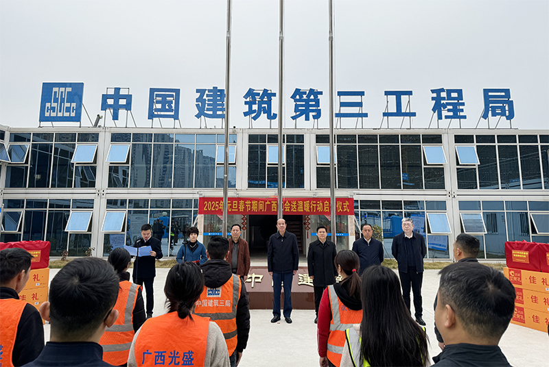 自治区人大常委会副主任、党组副书记,自治区总工会主席黄伟京出席启动仪式,并宣布2025年元旦春节期间广西工会送温暖行动启动。自治区总工会党组书记、常务副主席管理年出席启动仪式并讲话。自治区总工会副主席、党组成员黄韬主持启动仪式。自治区住房城乡建设厅副厅长、总工程师杨栋,自治区总工会党组成员、经费审查委员会主任黄海华,南宁市人大常委会副主任、市总工会主席陈尧参加活动。附属瑞康医院党委书记高宏君、副院长李铭,中建三局一公司广西分公司党委书记、总经理黄德钊参加活动。