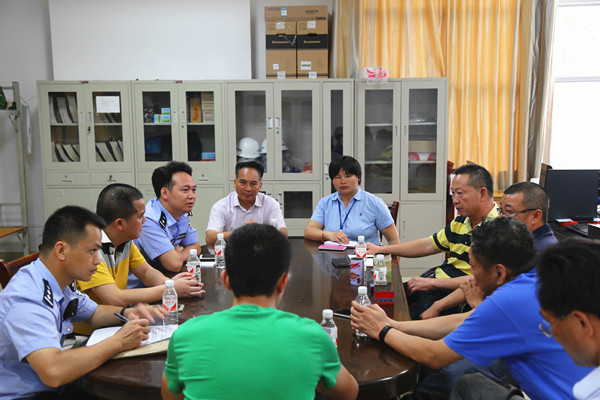 期间,陈副所长首先通过查看安全设施和询问的方式对校园进行了安全排查,细致了解近期学校的安全情况,并向校方通报了辖区的治安情况,然后听取董副书记和韦部长对校园及其周边治安问题的反映,最后结合校方对公安工作的建议提出了新的工作思路:一是对我校增加巡逻路线,每天不定时进入校园内协同我校加强治安防范,做好突发事件预防工作,以便在发生突发事件时能在最短时间内到达学校处置;二是与我校物业安保公司建立 “安全工作”微信平台,及时掌握校园安全动态,进一步加强联系联防。