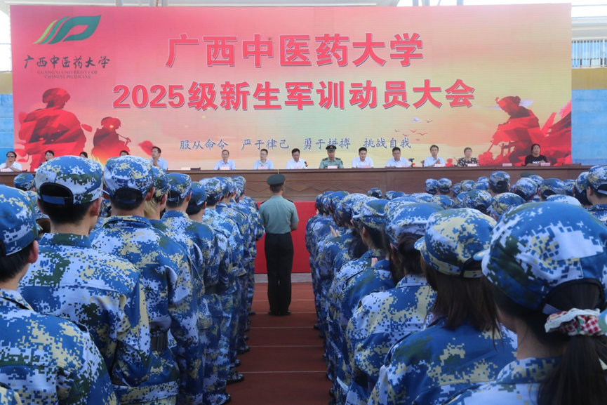 会上,何刚亮作动员讲话。他指出,军事技能训练是大学生涯的必修课,是国家国防建设的基础要求,更是学校落实立德树人根本任务、培养担当民族复兴大任时代新人的关键举措。他提出三点殷切希望和要求:一是希望同学们提高政治站位,端正训练态度,深刻认识军训重大意义。要以高度的政治责任感和饱满的精神状态投入到训练中,将“敬佑生命、救死扶伤、甘于奉献、大爱无疆”的医者精神与军人“听党指挥、能打胜仗、作风优良”的强军目标相结合,为今后投身中医药事业、护佑人民健康打下坚实的思想和作风基础;二是希望同学们锤炼过硬作风,严守组织纪律,展现新时代医学生风采。要自觉以一名军人的标准严格要求自己,勇于挑战自我,敢于吃苦耐劳,在严格训练中磨练“悬壶济世”所需的坚韧意志和强健体魄,培养“精诚仁和”所蕴含的团队协作精神和严明纪律意识,展现出新时代中医药学子昂扬向上、奋发有为的精神风貌;三是希望军训教官坚持科学施训,确保安全有序,圆满完成军训任务。要牢固树立以学生为本的理念,精心设计训练内容,合理安排训练强度,发扬我军拥政爱民优良传统,以情带兵、严管厚爱,因人施教、循序渐进,确保军训工作安全、有序、高效、圆满完成。