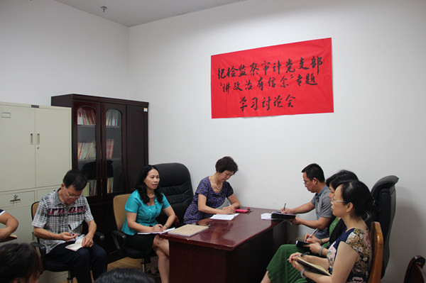 为贯彻落实学校党委关于在全体党员中开展“两学一做”学习教育的部署和要求,按照党支部制定的“两学一做”学习教育计划,2016年5月20日上午,我校纪检监察审计党支部组织召开“讲政治 有信念”专题学习讨论会。纪检监察审计党支部全体党员参加会议,校党委副书记、纪委书记杨连招以普通党员身份参加学习讨论。讨论会由党支部书记黄燕主持。