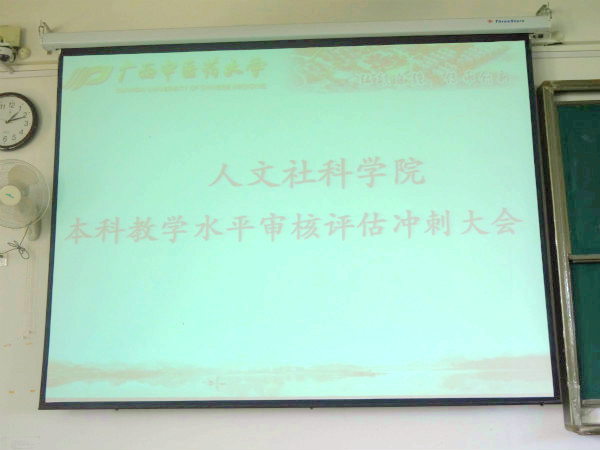 2016年5月31日下午14时,我院本科教学工作审核评估冲刺大会在教学楼1-301举行。我校党委副书记董塔健教授、我院党总支书记李怀泽教授、院长韦兆钧教授、副院长王碧艳副教授及我院全体师生出席了本次冲刺大会。