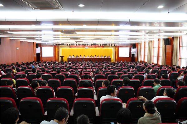 6月16日下午,星空彩票老版本下载本科教学工作审核评估反馈会在仙葫校区举行。全体评估专家组成员、自治区教育厅副厅级巡视员杨林,星空彩票老版本下载党委书记尤剑鹏、副书记董塔健,副书记、纪委书记杨连招,副校长罗伟生、吴琪俊、戴铭,总会计师何刚亮,副厅级调研员李培春,学校全体中层干部、教学督导组全体成员,教研室主任、教师代表等近400人参加了会议。会议由专家组组长、成都中医药大学校长梁繁荣主持。