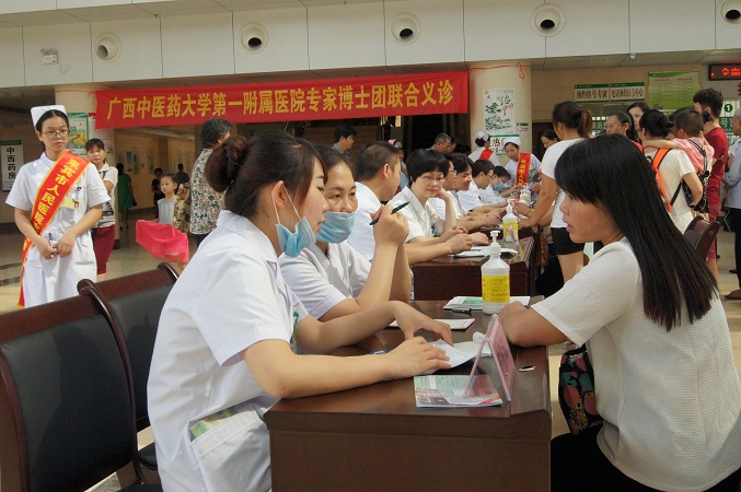 义诊活动:在第一附属医院党政领导鼎力支持下,派出了由科研部林华胜副部长带队,皮肤科主任钟江、推拿科副主任雷龙鸣、脾胃病科副主任彭卓嵛、心血管内科副主任何新兵、外二科副主任孙平良等各科精英组成专家博士团深入来宾市人民医院进行指导和义诊。义诊现场,我校专家博士团深受当地患者的欢迎,前来就诊、了解病情的患者络绎不绝,也侧面反映了市县群众对中医药的喜欢和热爱。