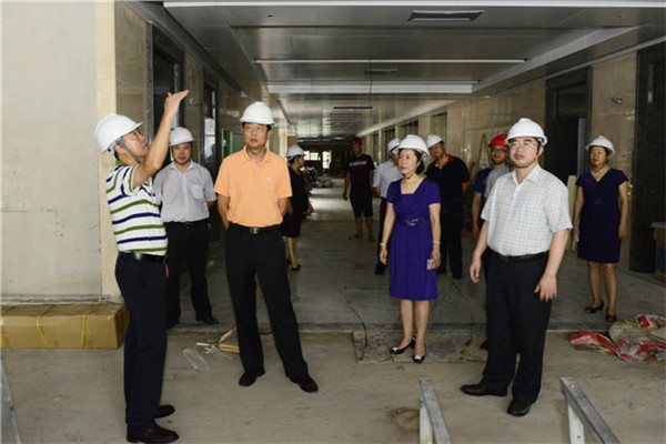 7月15日一早,星空彩票老版本下载党委尤剑鹏书记轻车简从,到一附院仙葫院区建设工地就项目进展情况进行调研指导。一附院院长黄贵华、党委书记李敏智、副院长谢胜、周建国、钟远鸣,仙葫院区、院办、党办、医务、护理、基建等部门负责人陪同调研。