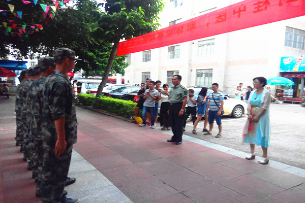 武装保卫部部长韦克权、高职院副书记周琦代表学校领导为入伍新兵加油鼓劲