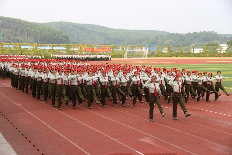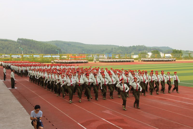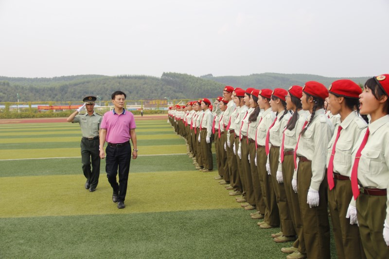 董塔健副书记在在军训汇演总指挥莫枝龙的陪同下依次检阅各军训方队