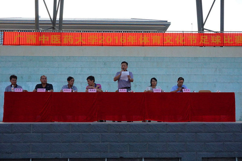 2016年10月14日下午, 2016年体育文化节足球比赛开幕式在我校仙葫校区足球场隆重举行。学校党委董塔健副书记、学生工作处肖华业处长、教务处唐梅文处长、团委王春花书记、校长办公室蓝开宝副主任、体育部石荣群副主任等领导出席了开幕式。开幕式由体育部副主任李荣源主持。学工处肖华业处长致开幕词,董塔健副书记宣布比赛开幕并为比赛开球。