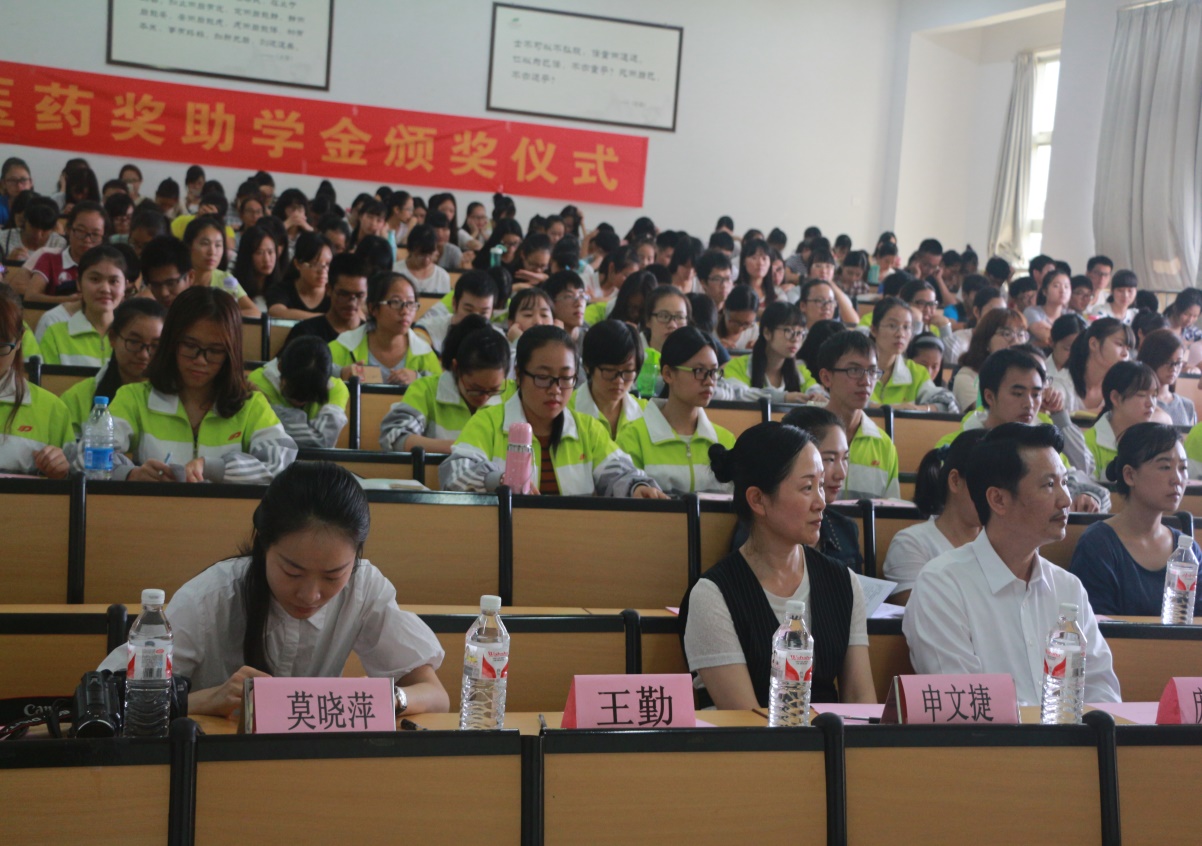 广西柳州医药股份有限公司捐资奖助学金颁奖仪式于2016年10月24日上午11:00在星空彩票老版本下载仙葫校区1栋303教室顺利举行。颁奖仪式由药学院陈勇院长主持,广西柳州医药股份有限公司申文捷副总经理、星空彩票老版本下载庞宇舟副校长、校党委宣传部、校学工处、校团委、药学院党政领导班子等领导出席了本次仪式。