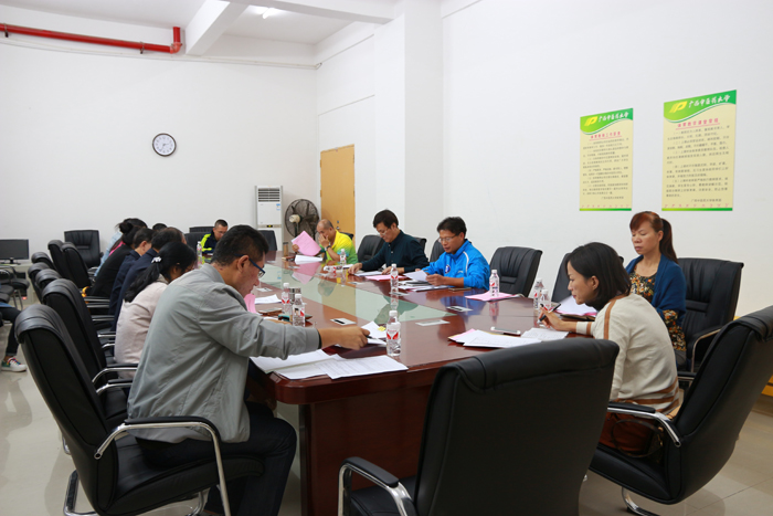 会议上,体育部李荣源副主任介绍了赛会的筹备情况,广西壮族自治区第七届高校教职工羽毛球比赛将于2016年11月9日~12日在我校仙葫校区体育馆举办。截止到10月30日为止,已有43个队报名参赛,参赛教职工人数为574人,同时李副主任对各工作组进行了工作布置。