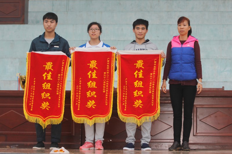 本届运动会各项比赛项目精彩纷呈,竞争激烈,成绩喜人。经过两天的激烈角逐,第三十八届田径运动会团体总分前八名为:第一名药学院,第二名基础医学院,第三名高等职业技术学院,第四名护理学院,第五名赛恩斯新医药学院,第六名瑞康临床医学院,第七名针灸推拿学院,第八名第一临床医学院。2016年度星空彩票老版本下载大学生体育文化节体总分前八名为:第一名药学院,第二名高等职业技术学院,第三名针灸推拿学院,第四名基础医学院,第五名护理学院,第六名第一临床医学院,第七名壮医药学院,第八名人文社科学院。赛恩斯新医药学院,基础医学院,以及瑞康临床医学院荣获本届大学生田径运动会最佳组织奖。