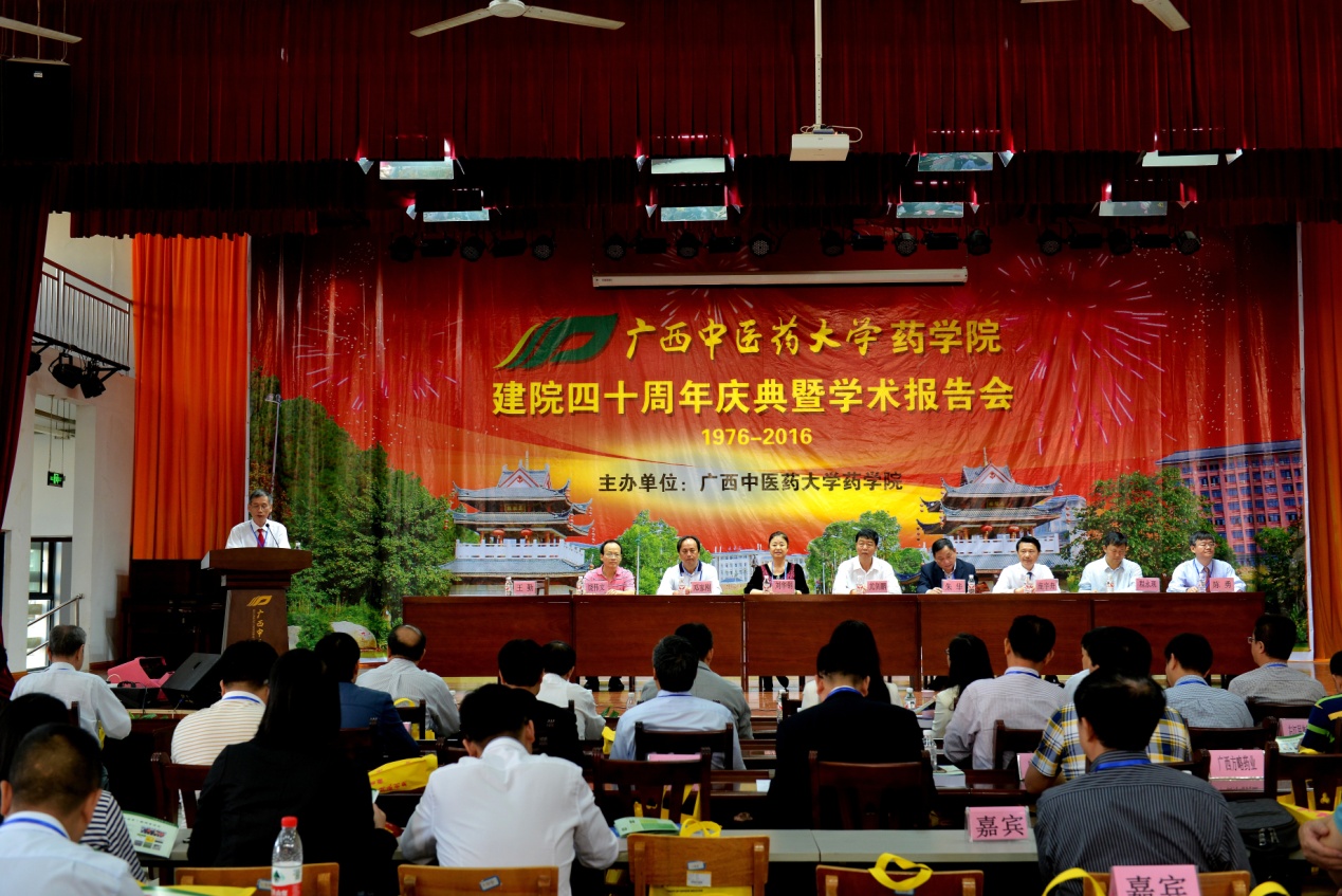 出席庆典的领导和嘉宾有学校党委书记尤剑鹏教授,广西民族大学党委书记朱华教授,原广西壮族自治区食品药品监督管理局巡视员刘华钢教授,广西中医药科学实验中心首席科学家邓家刚,国家杰出青年基金获得者中国科学院昆明植物研究所程永现研究员,桂林食品药品检验所所长饶伟文主任药师,星空彩票老版本下载药学院院长陈勇教授。北京中医药大学药学院、成都中医药大学药学院、黑龙江中医药大学药学院等16家区内外医药院校领导、桂林三金药业股份有限公司等25家企事业单位嘉宾代表、校友代表、学校职能部门(教学院部)代表、药学院老领导和老教师代表、以及师生代表共300余人参加了庆典大会。庆典大会由药学院党委书记王勤主持。
