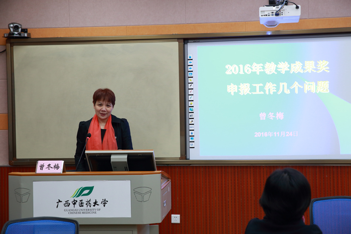 为了进一步做好我校自治区级教学成果奖的凝练和申报工作,提升我校教学成果奖的申报质量,11月25日上午,学校邀请了广西大学教育学院院长曾冬梅教授在仙葫校区给我校教师作2016年自治区级教学成果奖凝练及申报培训讲座及指导,讲座由罗伟生副校长主持。