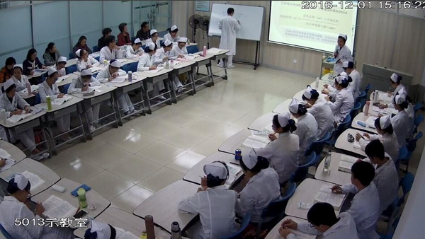 教学检查小组首先到明秀校区护理实训中心示教室对护理学院2013级护理学(英语方向)《护理学基础》课程进行了推门听课,对护理学院兰艺老师课堂的授课质量、学生的听课效果均予以充分肯定和高度评价。
