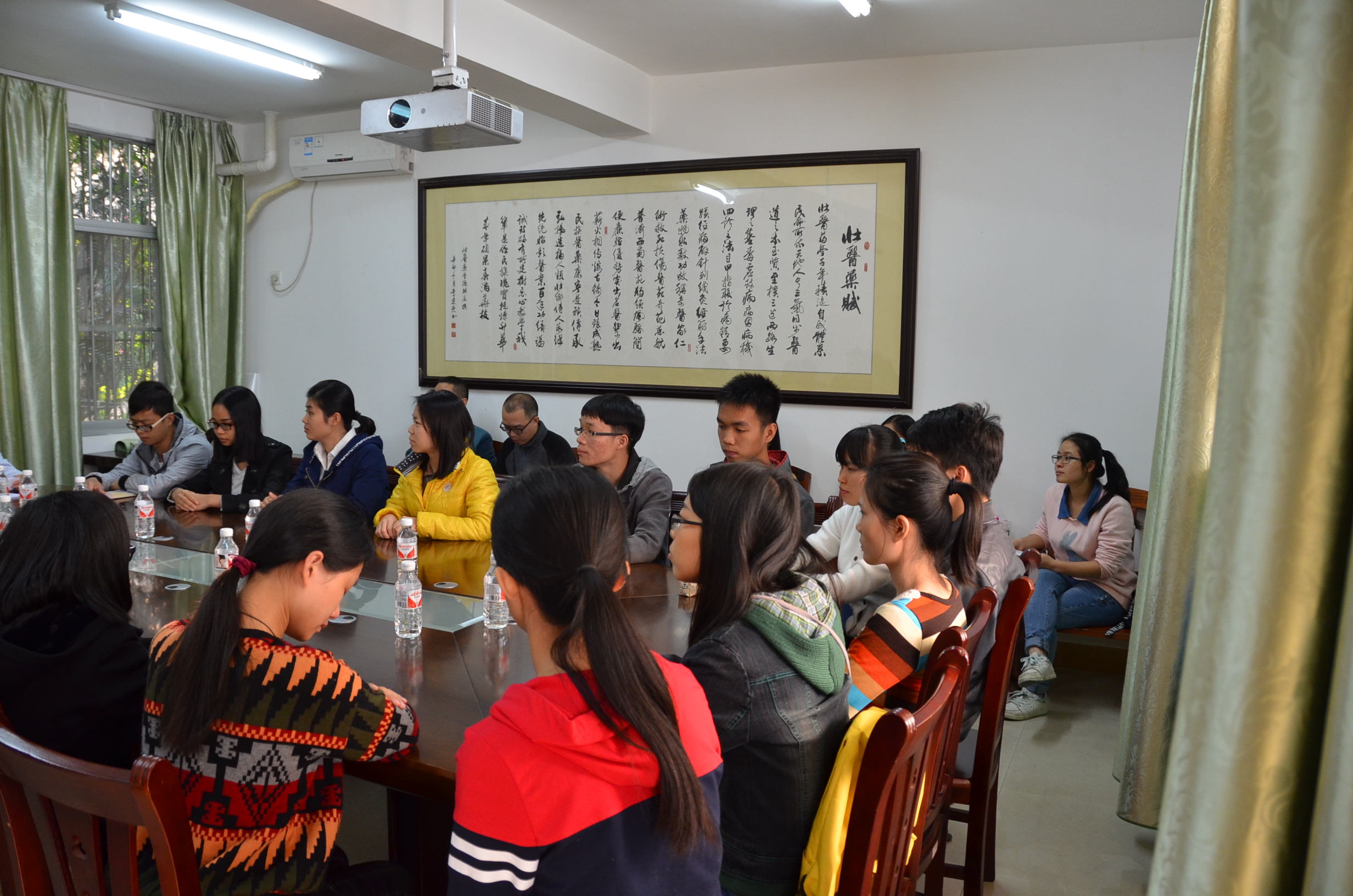 最后,庞副校长做总结讲话。庞副校长从国内办学情况讲述壮医的成立,让同学们树立对专业的自信心;针对学生的问题进行了一一解答,鼓励学生努力学习,并且传授学习心得及学习壮医的方法;给予学生希望,告诉他们医学本身就是一个长久的过程,鼓励他们努力变得更加自强自立自信。