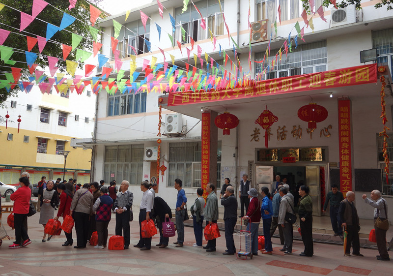 1月6日下午,明秀校区老年活动中心张灯结彩,彩旗飘扬,处处洋溢着喜庆的节日气氛。近300名离退休职工兴致勃勃地参加一年一度的迎春游园活动。在游园现场,钓鱼、套圈、夹鹌鹑蛋等12项游戏吸引着大家积极参与,75岁以上老人还可以现场参加寿星抽奖项目,让高龄老寿星们也能收获一份快乐与祝福。老同志们边参加活动边与老友畅叙友情,现场欢声笑语,其乐融融。广大离退休职工对学校关心老同志、爱护老同志、尊敬老同志的举措表示由衷的感谢。活动的开展,增进了大家相互之间的沟通、交流,达到互帮、互助、关爱的目的,真正使离退休人员老有所依、老有所乐,让他们的晚年生活更加丰富多彩。