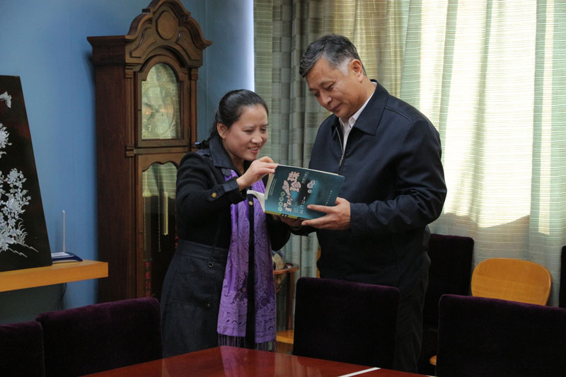 在我校明秀校区会展中心7楼会议室,于春生书记详细询问我校办学规模、民族医药发展、附属国际壮医医院建设等情况,向林江教授询问海洋药物研究进展情况。于书记指出,林江教授从事的是“创新事业”,希望林教授在新的一年里不断创新,充分发挥广西区位优势及海洋药物资源优势,努力探索学科领域最新前沿,在开发海洋医药方面研究出新的成果,促进社会经济发展,为服务“一带一路”倡议做出更大贡献。