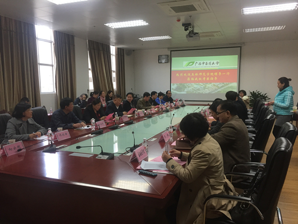 3月2日下午,玉林师范学院王卓华副校长、曹迎副书记一行18人莅临我校考察。学校党委副书记董塔健、副校长罗伟生,党委宣传部、教务处、教学评价与质量保障中心、后勤处、基础医学院、药学院领导与王卓华副校长一行在图书馆323会议室就本科教学审核评估工作经验与做法进行座谈交流。会议由董塔健副书记主持。