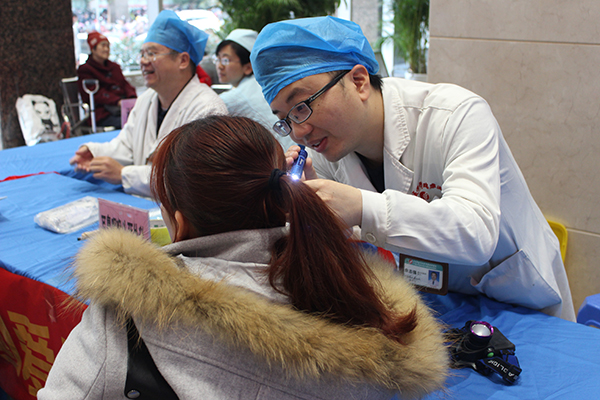梁阿姨是瑞康医院老病友,由于心脏问题她先后在医院做了几次支架手术,她对医院医护人员技术能力和服务水平都非常满意,借着义诊机会,她来咨询一下耳鼻喉科专家自己的耳朵问题。耳鼻咽喉头颈外科彭杰副主任详细询问梁阿姨平时生活用耳情况,并进行细致检查,彭杰副主任建议,梁阿姨平时需要关注听力变化情况,待到科室应用仪器设备得出明确检查结果后,再决定是否使用助听器进行治疗。