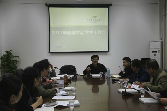 3月7日上午,在我校仙葫校区大学生活动中心三楼317会议室组织召开2017年春季学期学生工作会暨学习贯彻全国高校思想政治工作会议精神。会议由学工部(处)部(处)长叶勇玲主持,各学院分管领导、辅导员和学工处、团委全体成员60余人参加了会议。学校党委副书记董塔健出席会议并讲话。