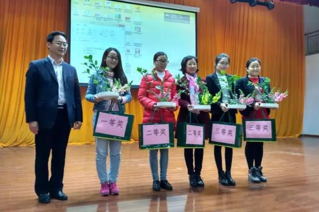 获奖教职工向大家展示插花作品