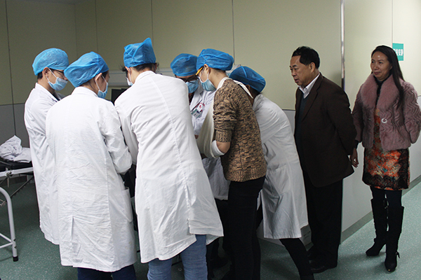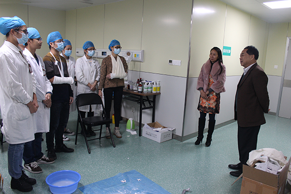 3月16日下午,星空彩票老版本下载罗伟生副校长来到瑞康临床医学院医学实训基地,亲切看望辛苦备战第八届全国高等医学院校大学生临床技能竞赛的医院学生。医院党委副书记、副院长陈日兰及相关科室负责人陪同罗副校长一行。