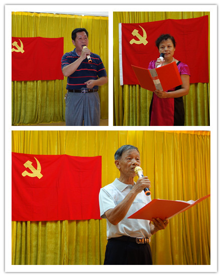 在诗歌朗诵会上,各支部纷纷上台表演了精心准备的朗诵节目,离退休党员们以饱满的热情,歌颂党、歌颂我们伟大的祖国、歌颂学校。如退休直属党支部唐庆民同志自创的一首《七一有感》,抒发了对党的生日到来的无限喜悦之情;退休药学党支部准备的朗诵节目《有一首歌》,表达出老党员们对党无限的热爱;退休临床党支部的朗诵的《七一感怀:再创夕阳红》,把对党的忠诚及作为一名医者和教师的情怀,深深地融入到诗歌里,引起了大家的共鸣。离休支部和在职党支部党员们共同演绎了一首激情澎湃的《水调歌头�重上井冈山》,仿佛过去的峥嵘岁月历历在目,感染了现场的每一个人;最后,退休机关党支部30名老党员集体朗诵了该支部陈江同志撰写的《光荣与梦想》,抒发了对学校关切热爱之情,将朗诵会的气氛推向高潮,全场响起热烈的掌声。在全场齐唱《没有共产党就没有新中国》的歌声中朗诵会圆满结束。
