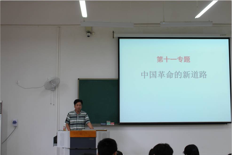 公开课上,韦兆钧以“1927年大革命失败后,中国共产党面临的严峻形势”为课堂导入,用大量的历史资料就四大方面的内容进行解读:一是中国共产党敢不敢坚持革命,怎么样坚持革命;二是中国共产党早期理论探索;三是中国共产党新道路的实践探索;四是中国革命新道路理论的形成。在教学过程中,韦兆钧院长充分运用史料旁征博引,深入浅出地结合教学内容深入贯彻了党的十九大报告、三全育人等内容,语言组织生动有趣,充分调动了学生的参与性,加强了师生互动,课堂气氛活跃,教学效果良好。