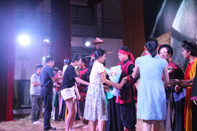 校团委书记王春花、副书记杨删向演员献花
