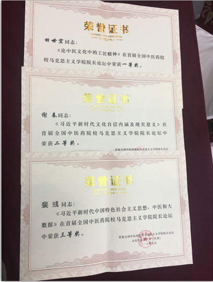 我院老师田世宏,谢春,裴彧的论文分别获得了首届全国中医药院校马克思主义学院院长论坛优秀论文评比一等奖、二等奖和三等奖的好成绩。